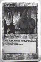 Glaubt man einschlägigen Fachzeitschriften,16 erleben Trading Card Games derzeit einen ungeheuren Boom seit jüngster Zeit auch im deutschsprachigen Raum.17 Bei einem Trading Card Game spielen zwei oder mehr Spieler gegeneinander. Die Karten stellen Länder, Burgen, Heldencharaktere, Armeen, Monster, Ereignisse, Zaubersprüche, Waffen usw. dar. Ziel des Spiels ist es, durch möglichst geschickte Kombination von Karten die gegnerischen Kartenwerte zu übertreffen. Der Gewinner erhält meist die besiegten Karten des Gegners. Da die Karten in kleinen Päckchen, sogenannten Starter Packs (Grundset) und Boosters (Erweiterungssets) verkauft werden, in denen die Karten wundertütenartig gemischt sind, ist der Kaufanreiz sehr hoch das Gewinnen hängt nämlich nicht unwesentlich vom Besitz seltener Karten ab. Im Trading Card-Bereich werden nationale und internationale Turniere ausgetragen. Die abgebildete Karte Inquisition stammt aus dem Kartenspiel Dark Force, einer Umsetzung des Rollenspiels Das Schwarze Auge in ein Trading Card Game.